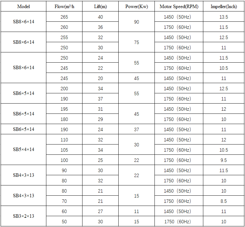 Centrifugal Pump Technical Parameters: