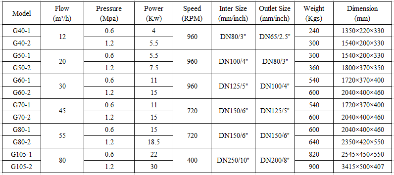 Screw Pump Technical Parameters: